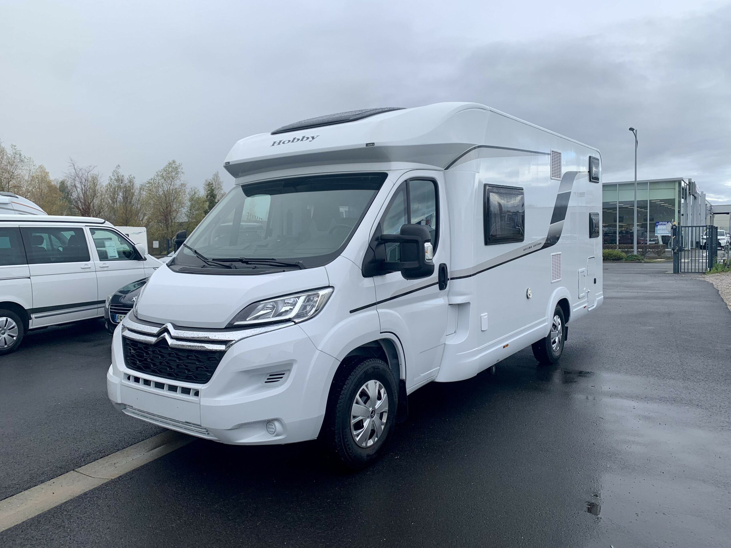 Camping-Car HOBBY T65 HKM de 2024 avec 5 couchages et 5 places assises , véhicule neuf CITROËN Jumper 2,2 l – BlueHDi 140, Euro 6d-FINAL, 2 179 ccm, 103 kW / 140 ch, avec technologie Stop and Start Châssis Châssis CITROËN à cadre surbaissé Light, 3 500 kg Longeur 6.99 m Largeur 2.30 m Hauteur 2.87 m