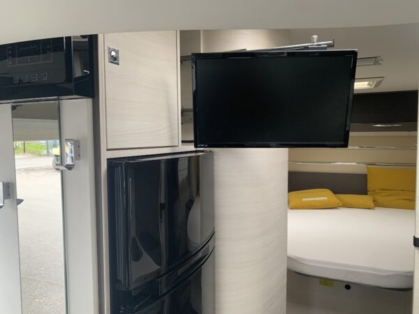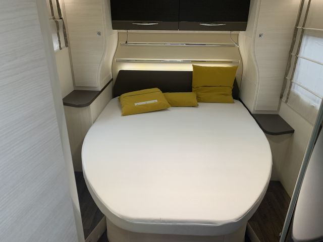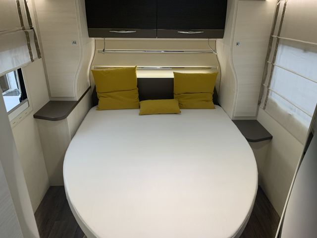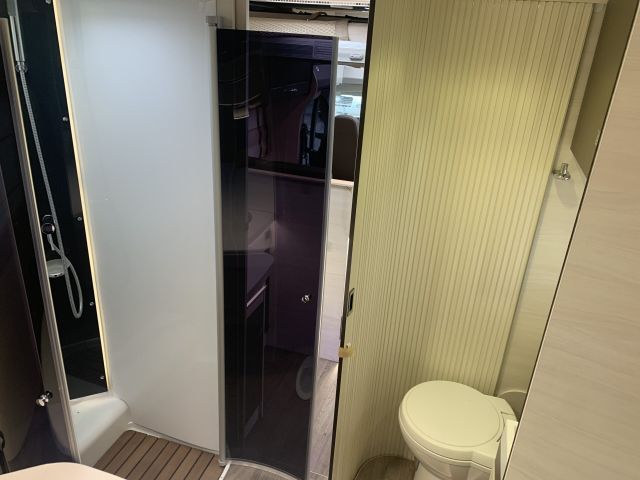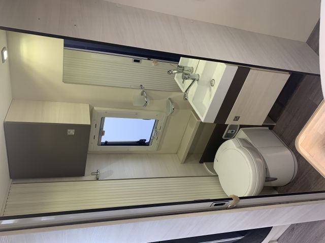 Très beau camping-car , grande douche et grande salle d’eau avec lit central.