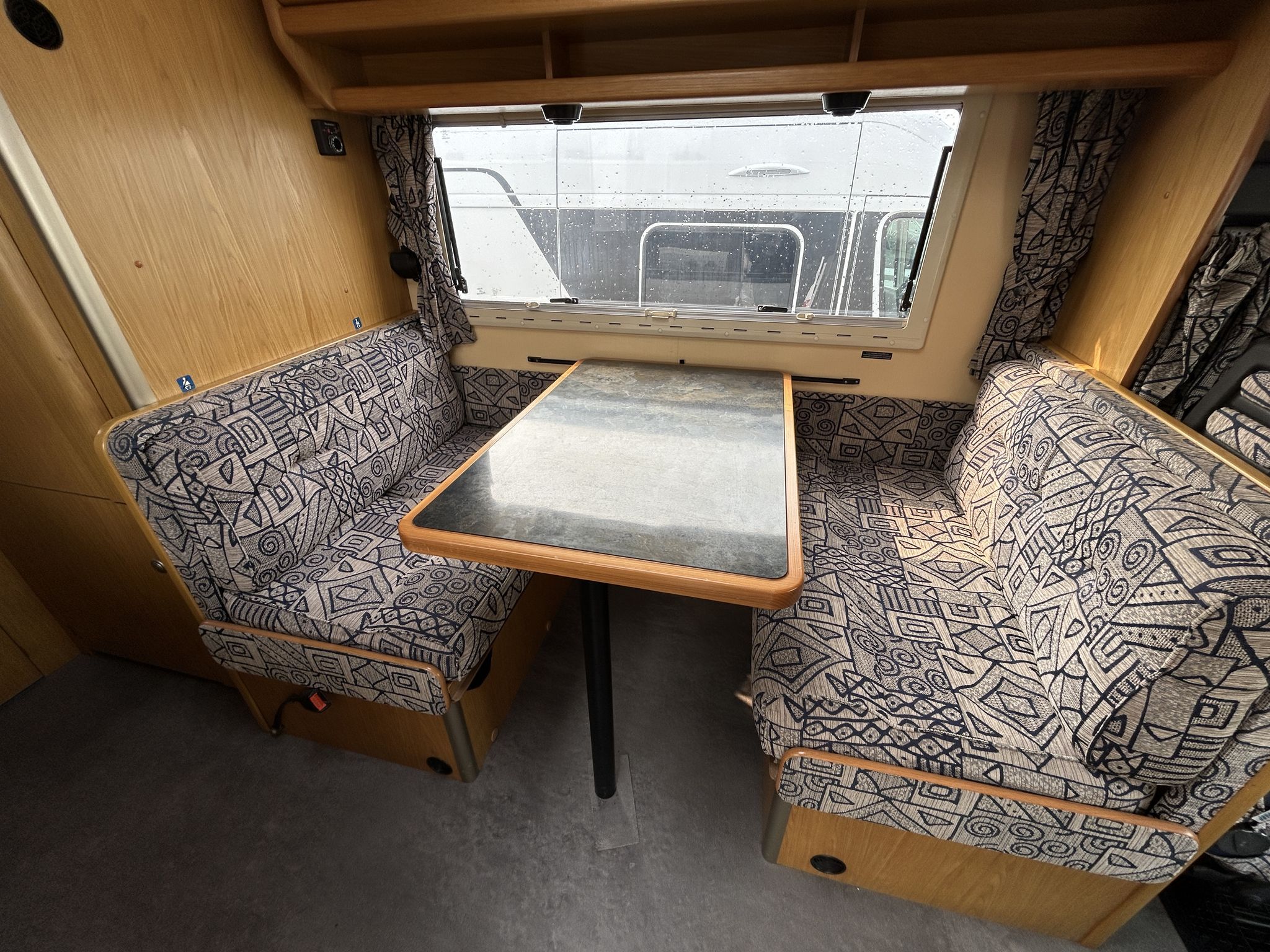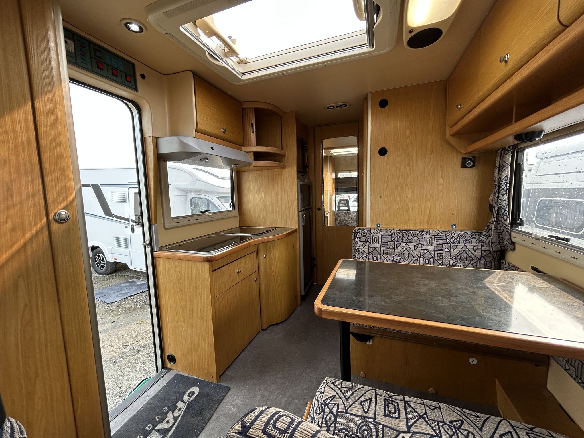 Capucine Laika Ecovip 52G 4 places double plancher garage XXL Caractéristiques techniques Implantation couchages: lit capucine et lit dinette Motorisation : 8L 127 CV Kilométrage : 74500 km Date de mise en circulation : 08/2003 Nombre de places carte grise : 4